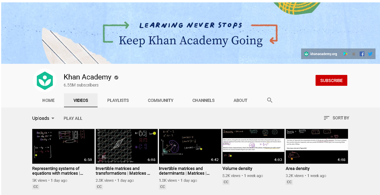 Khan Academy’s channel art reinforces the brand’s vision of delivering world-class education completely online. The channel art is fun and clean, with a colorful touch to the characters.