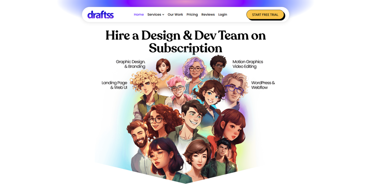 From logos to landing pages, Draftss covers everything, so you don’t need to juggle multiple freelancers.